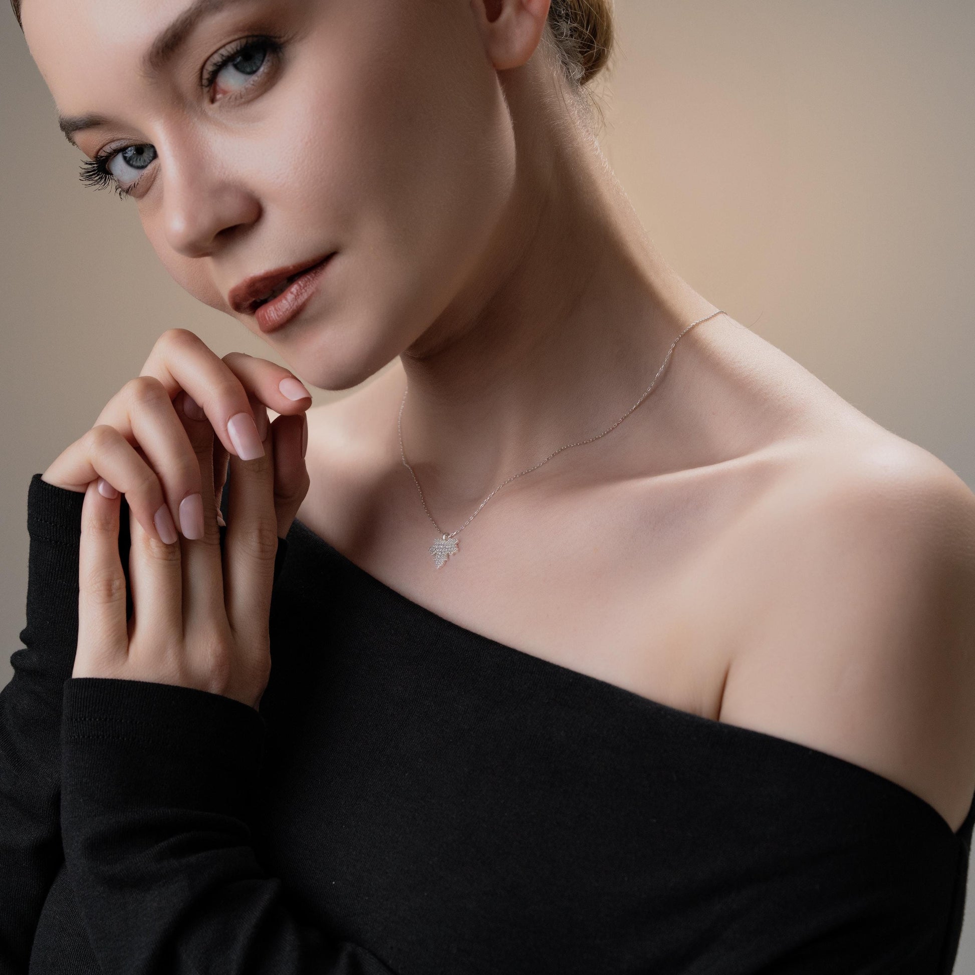 This beautiful maple leaf necklace features a dazzling leaf pendant embellished with shimmering cubic zirconia stones. Available in both gold and silver finishes, it offers a minimalist yet sophisticated look suitable for any occasion. A perfect accessory for nature lovers or anyone who enjoys elegant and stylish jewelry.