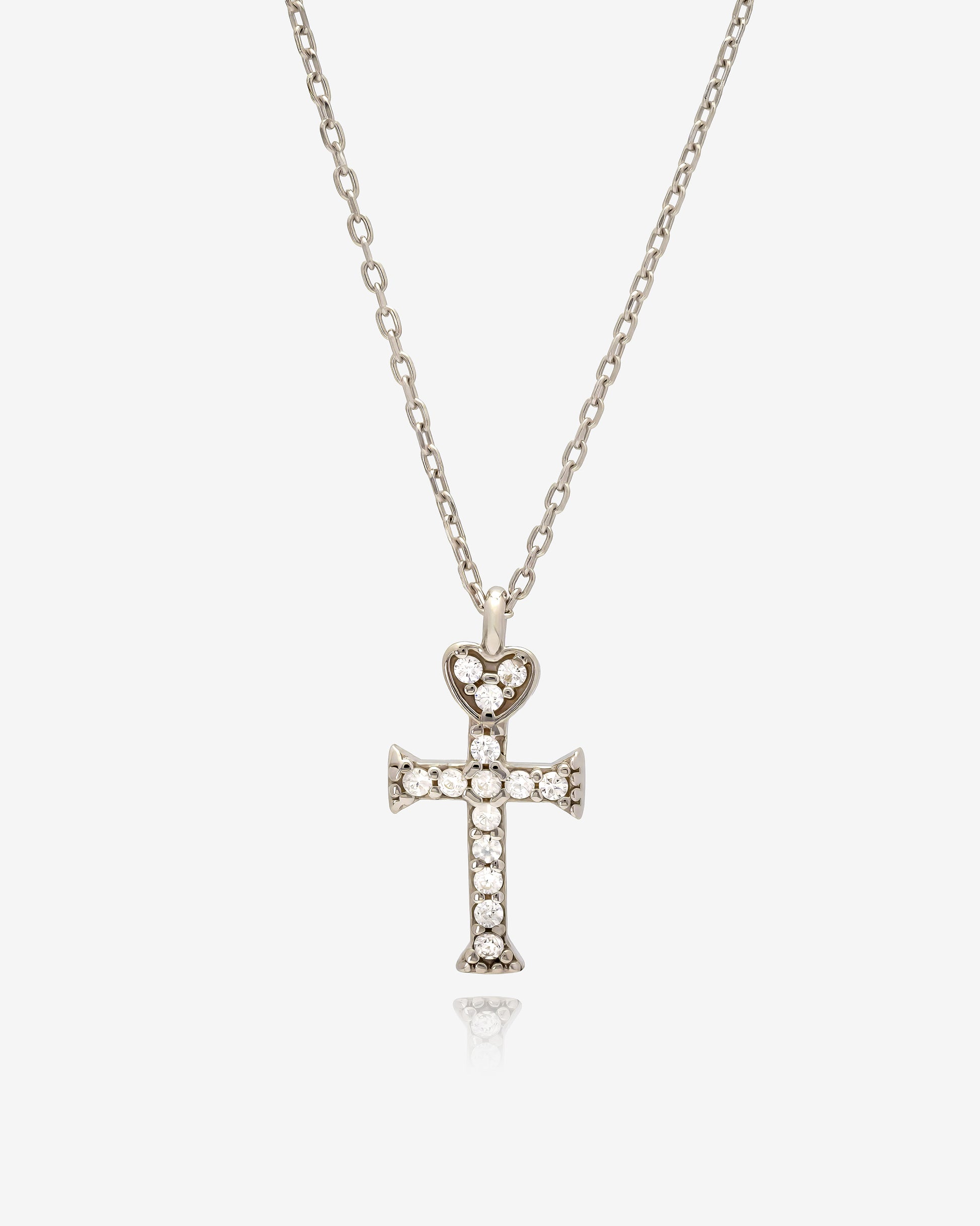 Dainty Heart Cross CZ Necklace - Sterling Silver