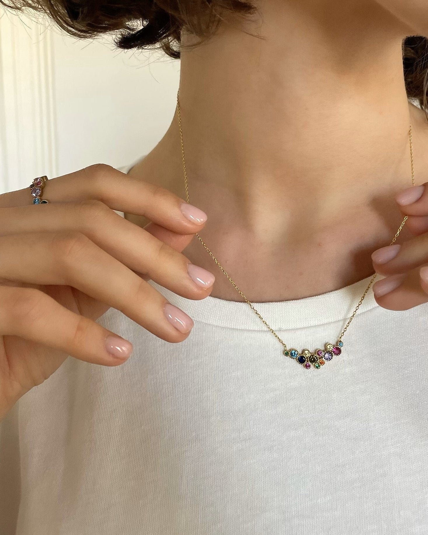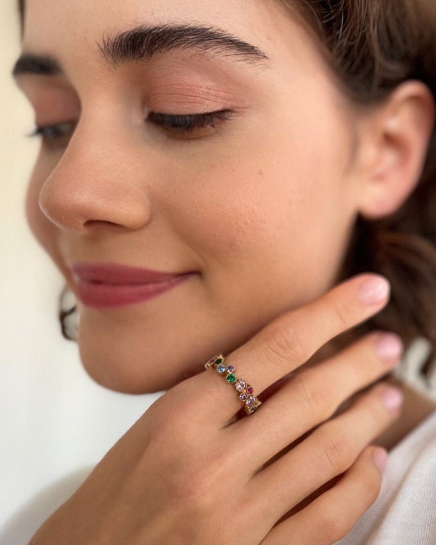 This fancy rainbow ring features vibrant multicolor CZ crystals set in a gold-plated band, creating a dazzling statement piece. Perfect for adding a pop of colour to any outfit, it’s bold, playful, and eye-catching. Ideal for parties, special occasions, or as a fun gift for someone who loves colourful jewellery.