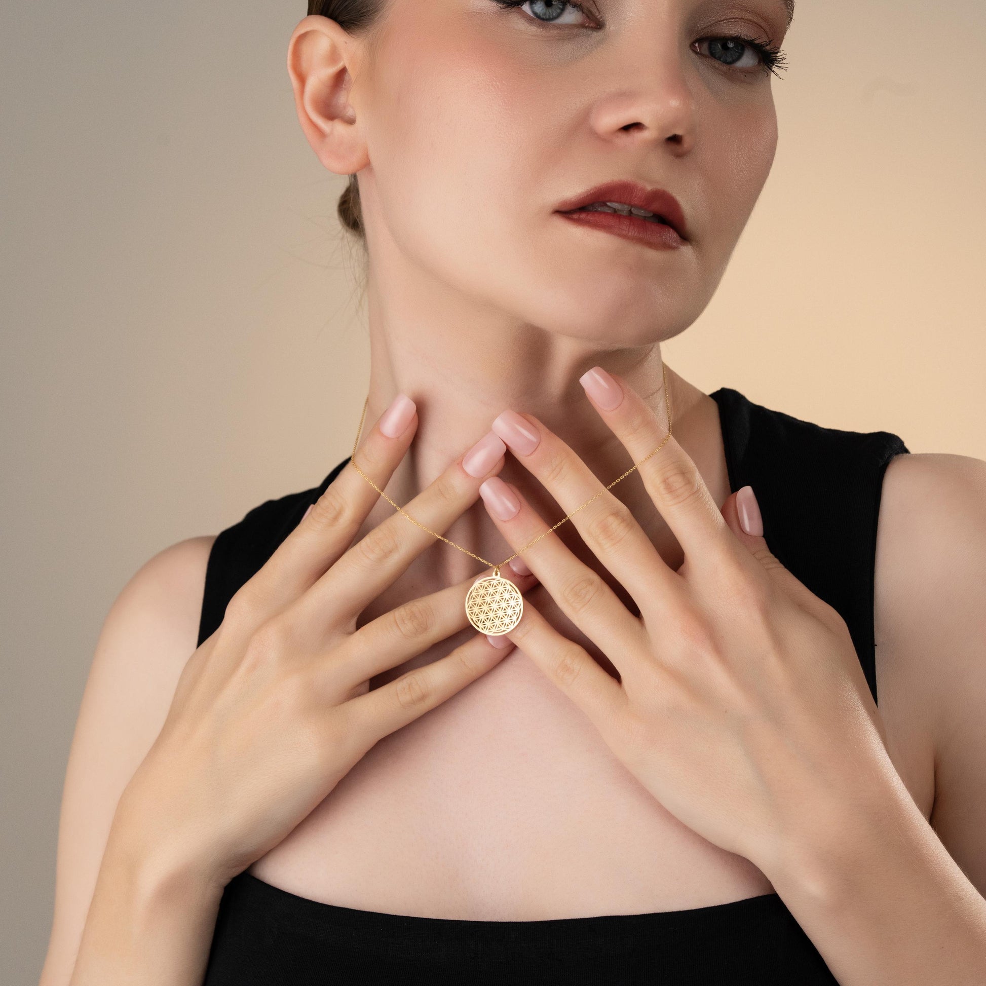 This gold Flower of Life medallion necklace is crafted in 925 sterling silver and inspired by sacred geometry, symbolising harmony, balance and creation. Its clean, minimalist design makes it a meaningful yet elegant piece for everyday wear or mindful styling. A timeless necklace for women drawn to spiritual and symbolic jewellery.