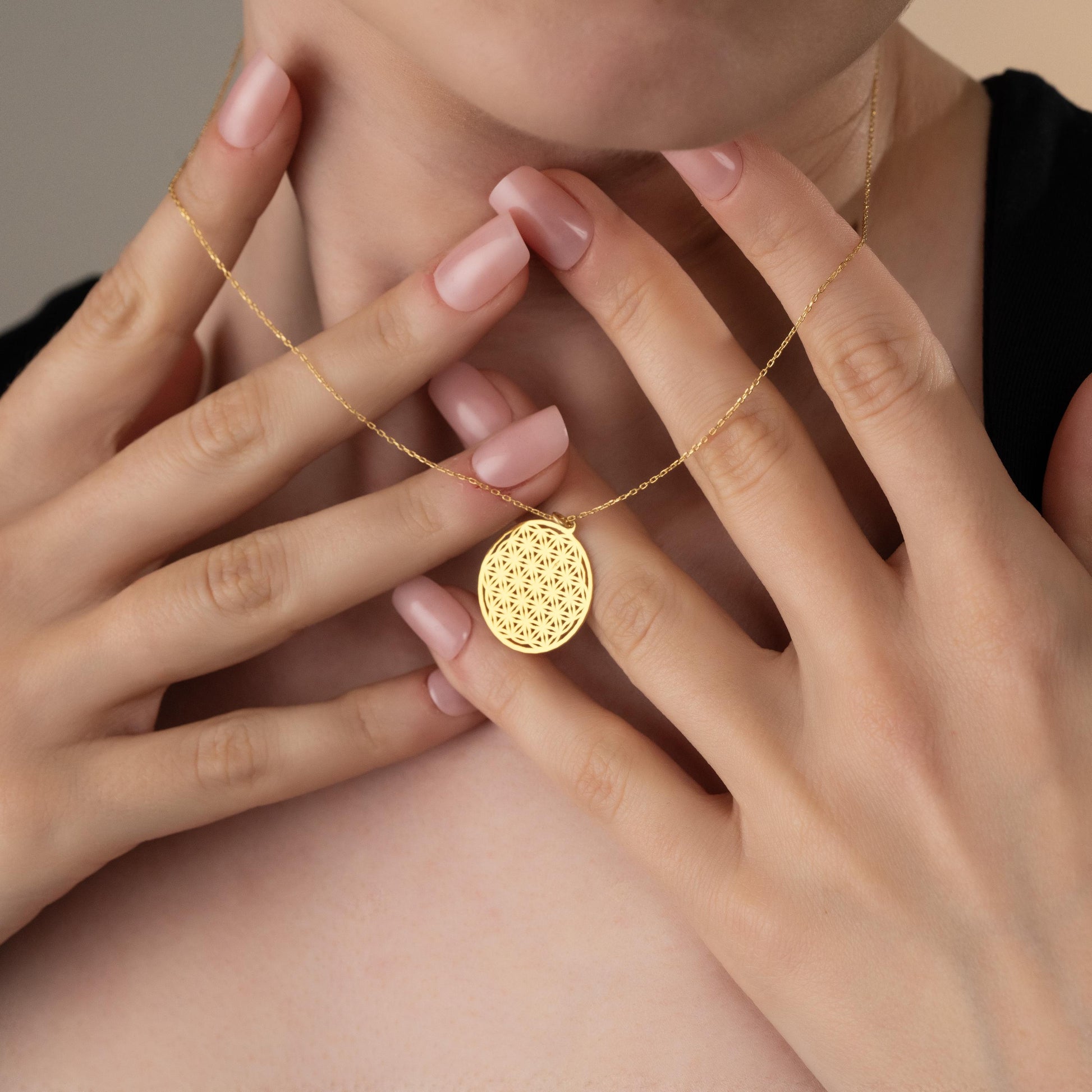 GOLD FLOWER OF LIFE MEDALLION NECKLACE