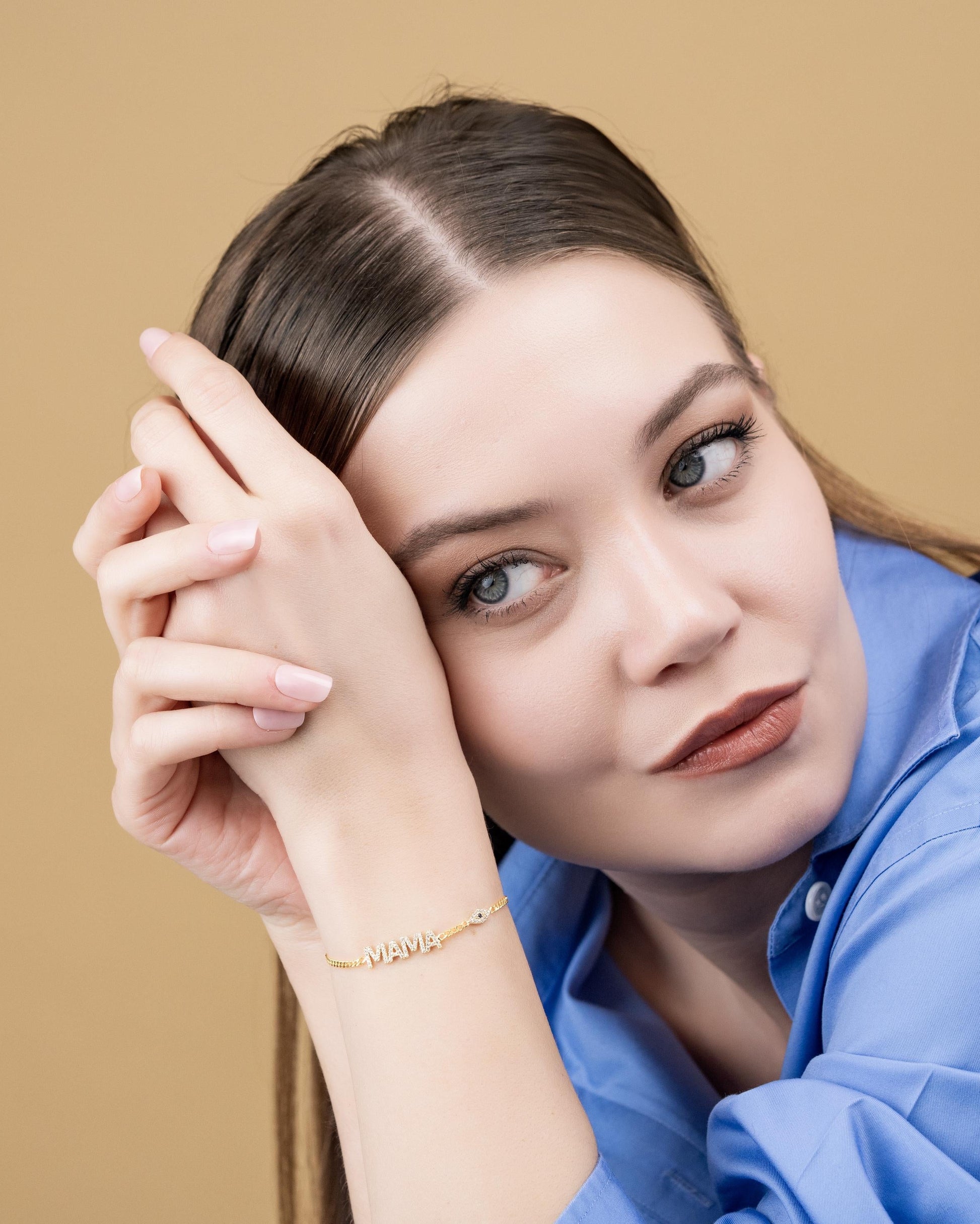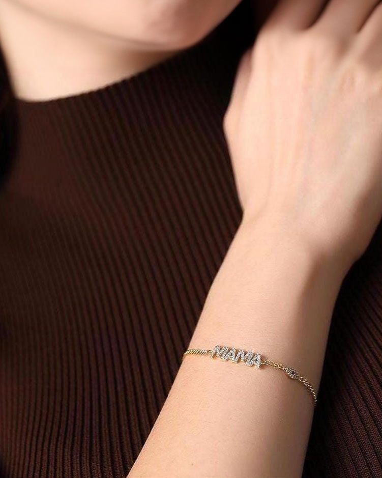 This elegant gold plated 925 Sterling Silver “Mama” bracelet features sparkling cubic zirconia letters and an adjustable chain for a comfortable everyday fit. Its dainty and meaningful design makes it a beautiful gift for moms, new mothers, or Mother’s Day.