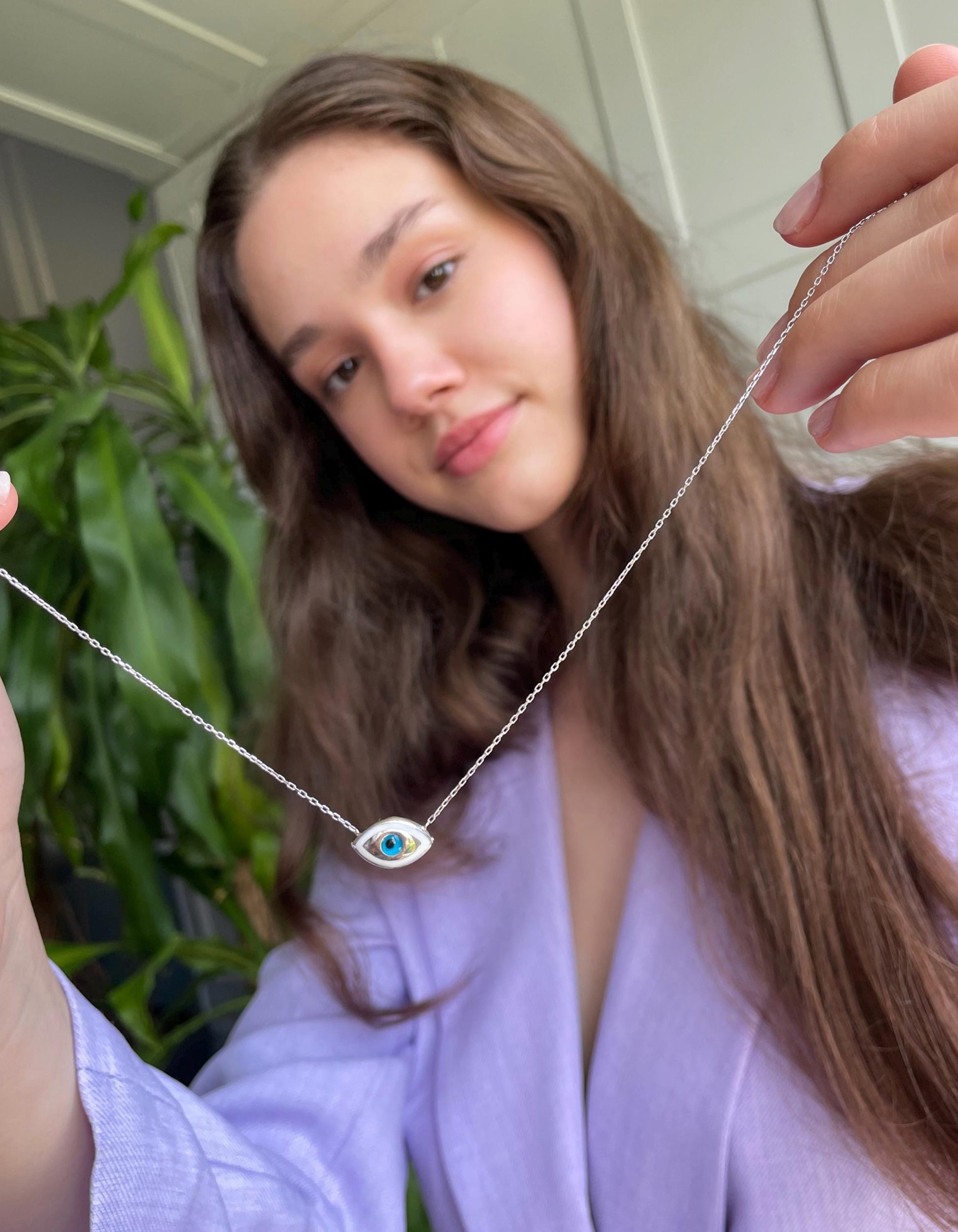 Marquise Evil Eye Protection Necklace - Sterling Silver
