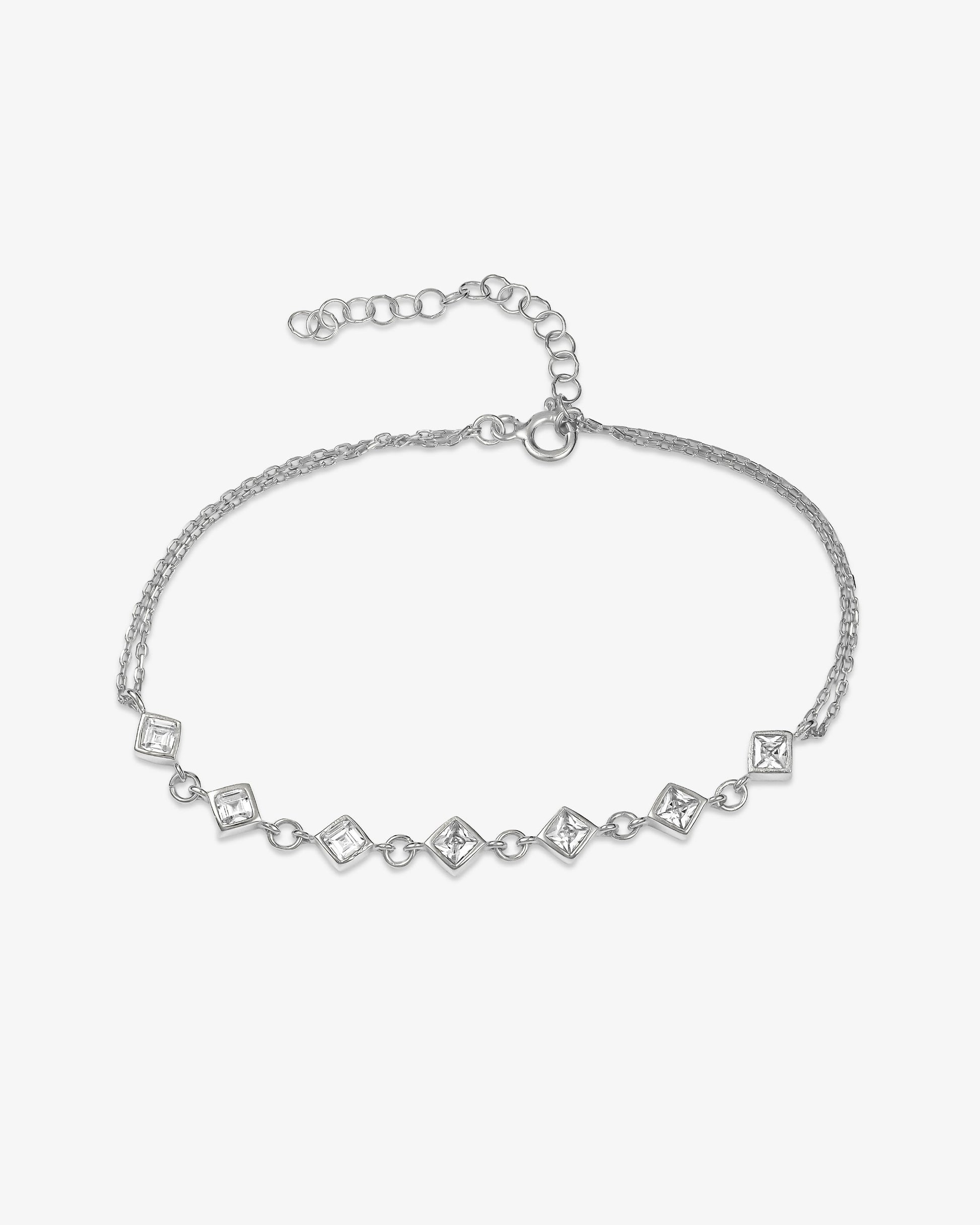 Featuring a delicate gold or silver chain, this bracelet is accented with geometric gemstone details for a refined pop of colour.