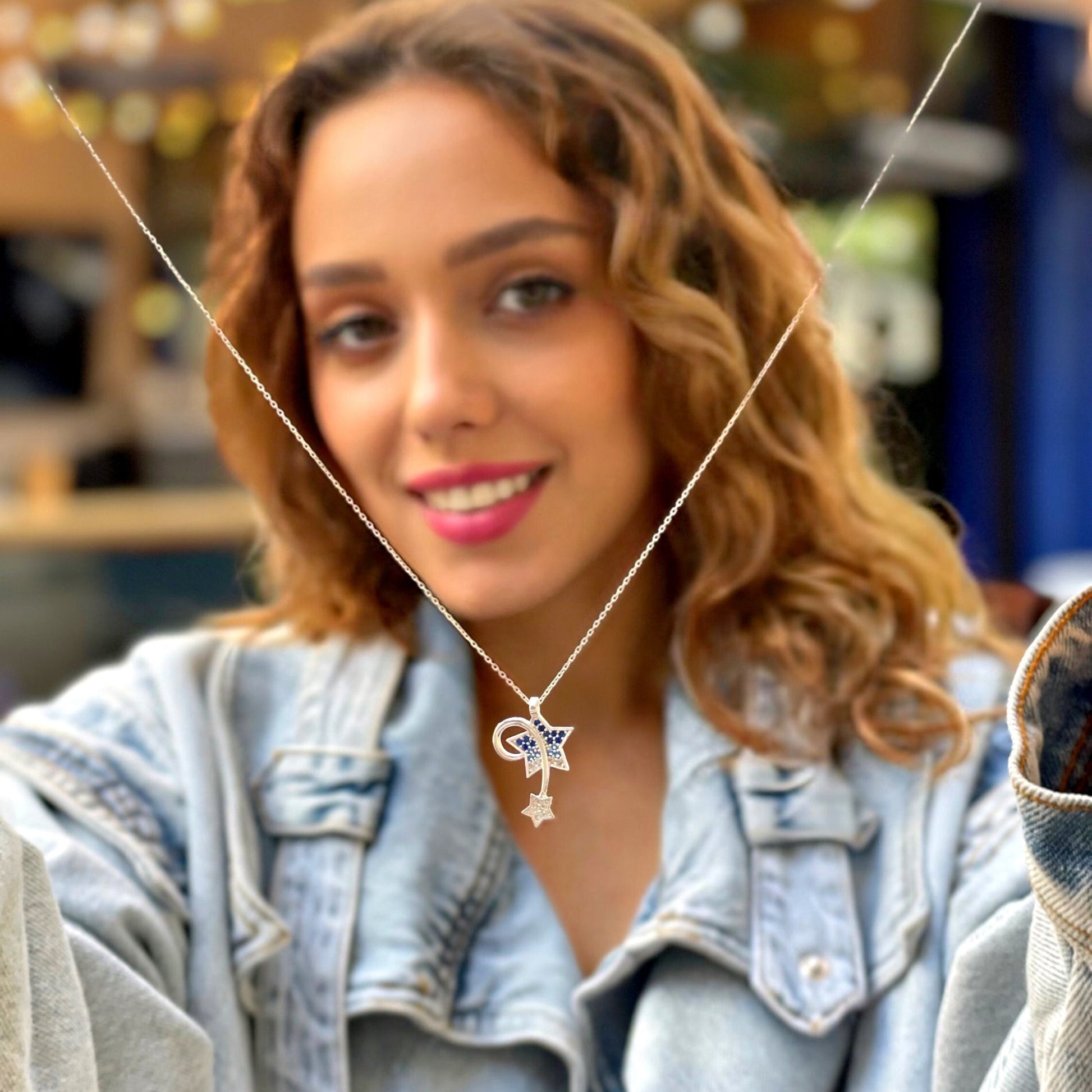 This minimalist comet necklace features a graceful shooting star design accented with shimmering blue gemstones for a celestial touch. Crafted from sterling silver, the elegant star pendant creates a delicate yet eye-catching silhouette. Perfect for everyday wear or layering, it’s a timeless piece for lovers of celestial jewellery.