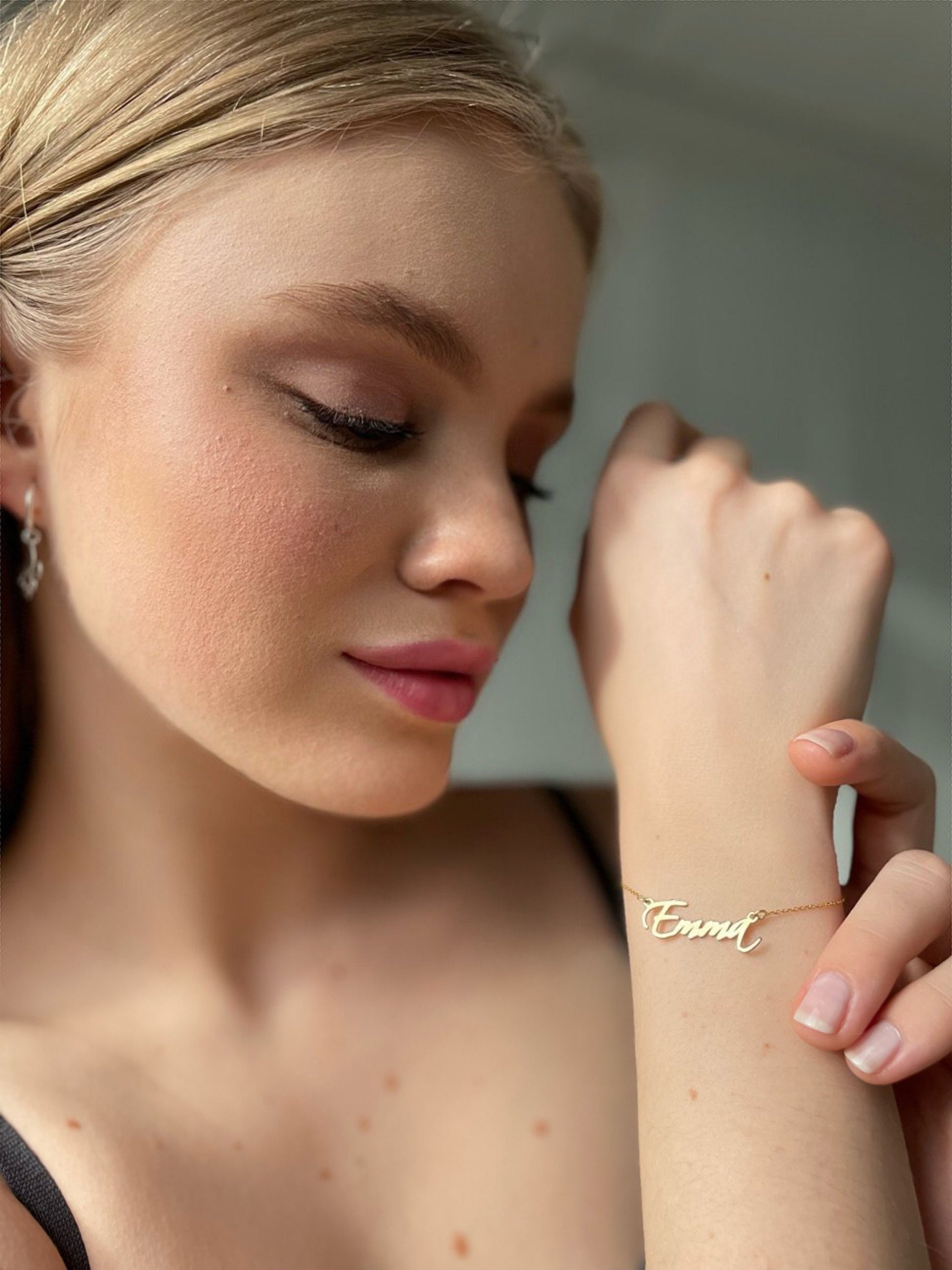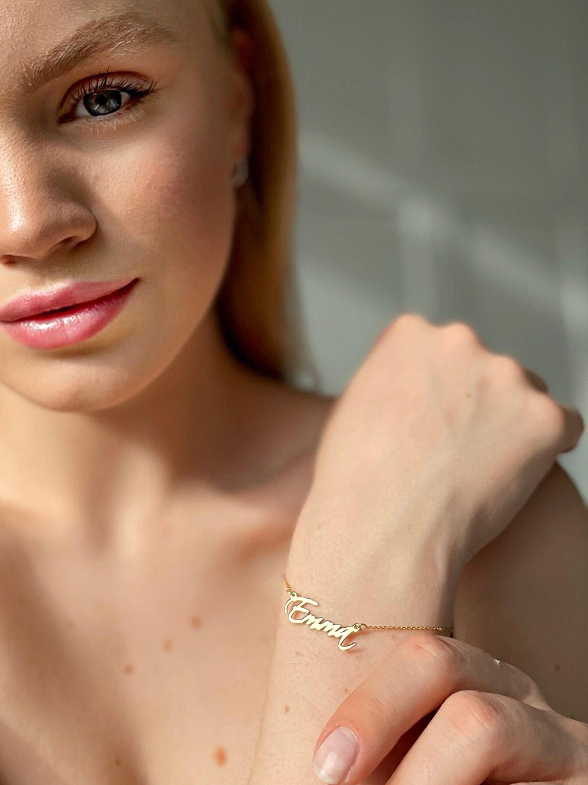 This personalised name bracelet is crafted from 925 sterling silver, offering a sleek and timeless accessory. Customised with your chosen name or monogram, it’s a delicate piece that adds a personal touch to any outfit. Perfect for everyday wear or as a meaningful gift for someone special.