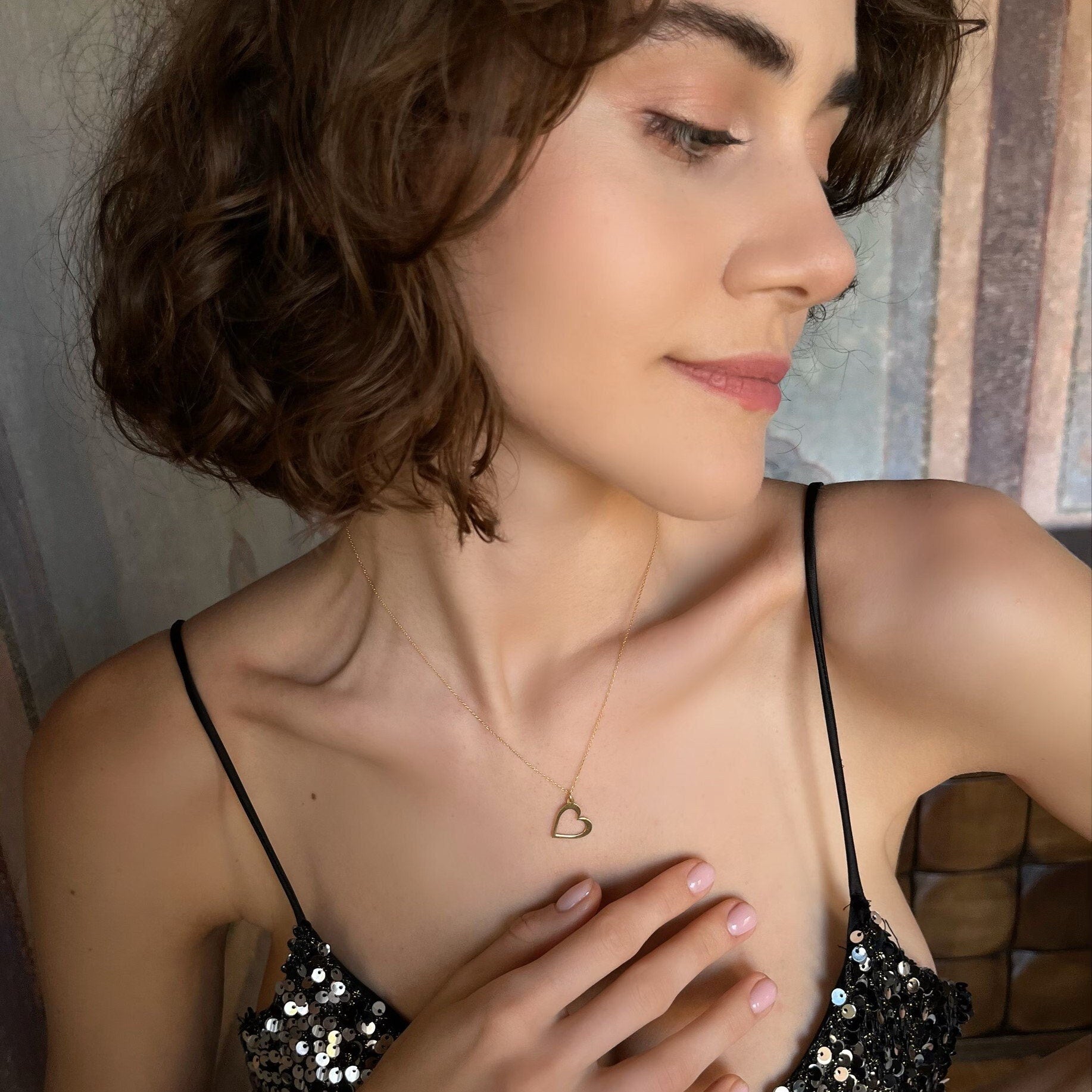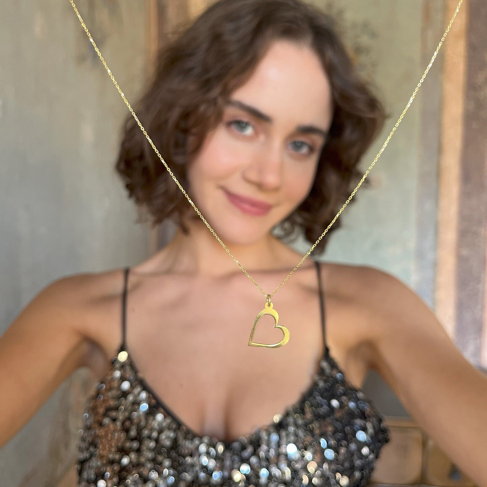 This minimalist heart pendant necklace features a delicate open heart design for a timeless and romantic look. Crafted from 925 sterling silver and finished in a gold tone, it is perfect for everyday wear or as a thoughtful gift.