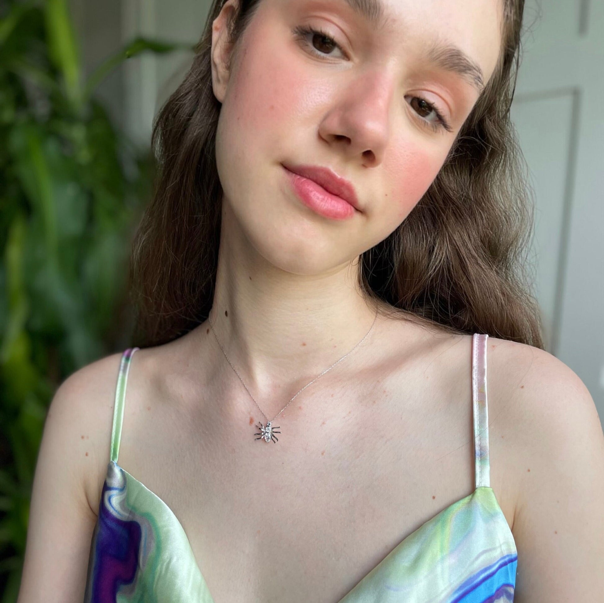 SILVER SPIDER CHARM NECKLACE