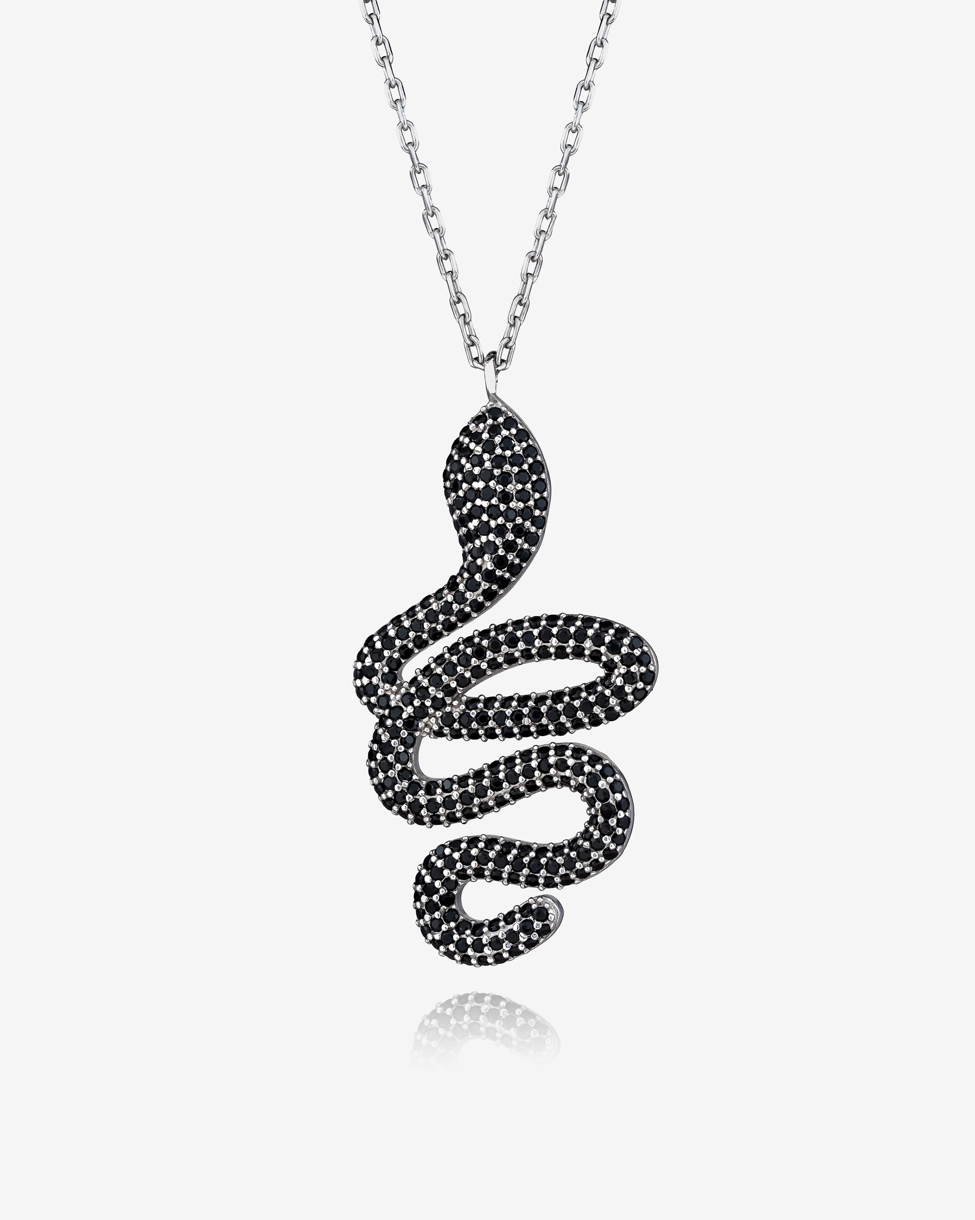 This bold snake necklace features a striking, oversized design that instantly draws attention. Available in silver or black finishes with black or white CZ gemstone options, it’s crafted for those who love powerful, statement jewelry. Perfect for elevating both evening looks and modern everyday style.