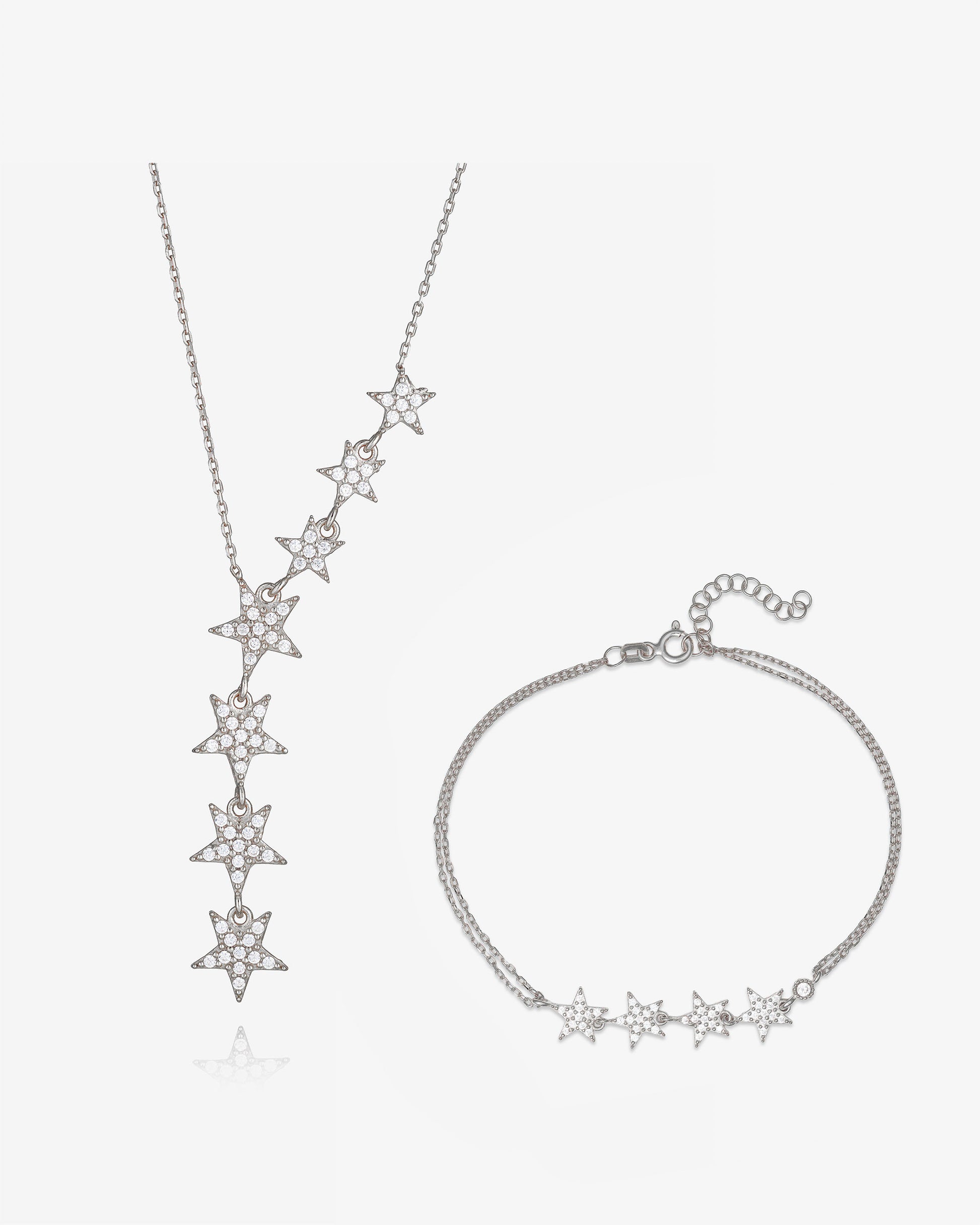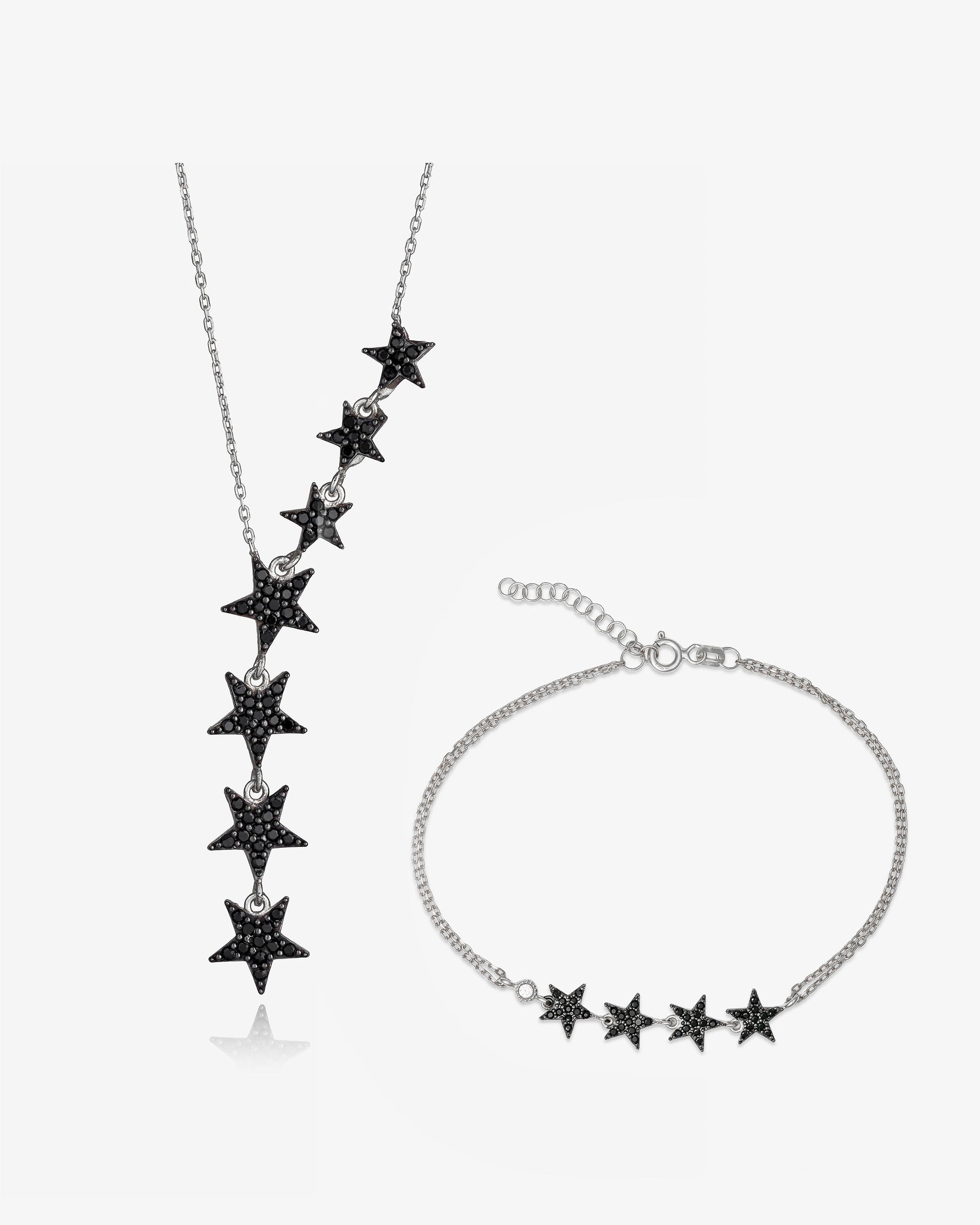 Star Lariat Necklace & Bracelet Set - Sterling Silver